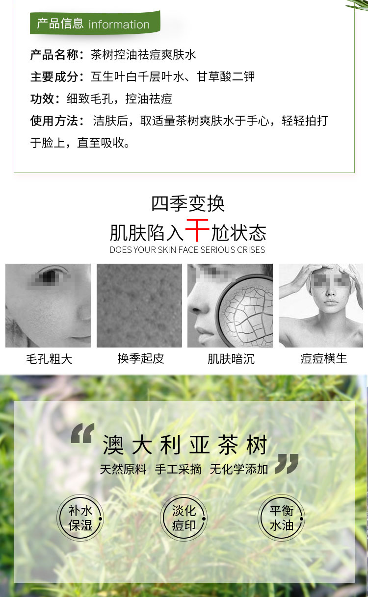 產(chǎn)品功效:控油祛痘,疏通毛孔,凈化肌膚